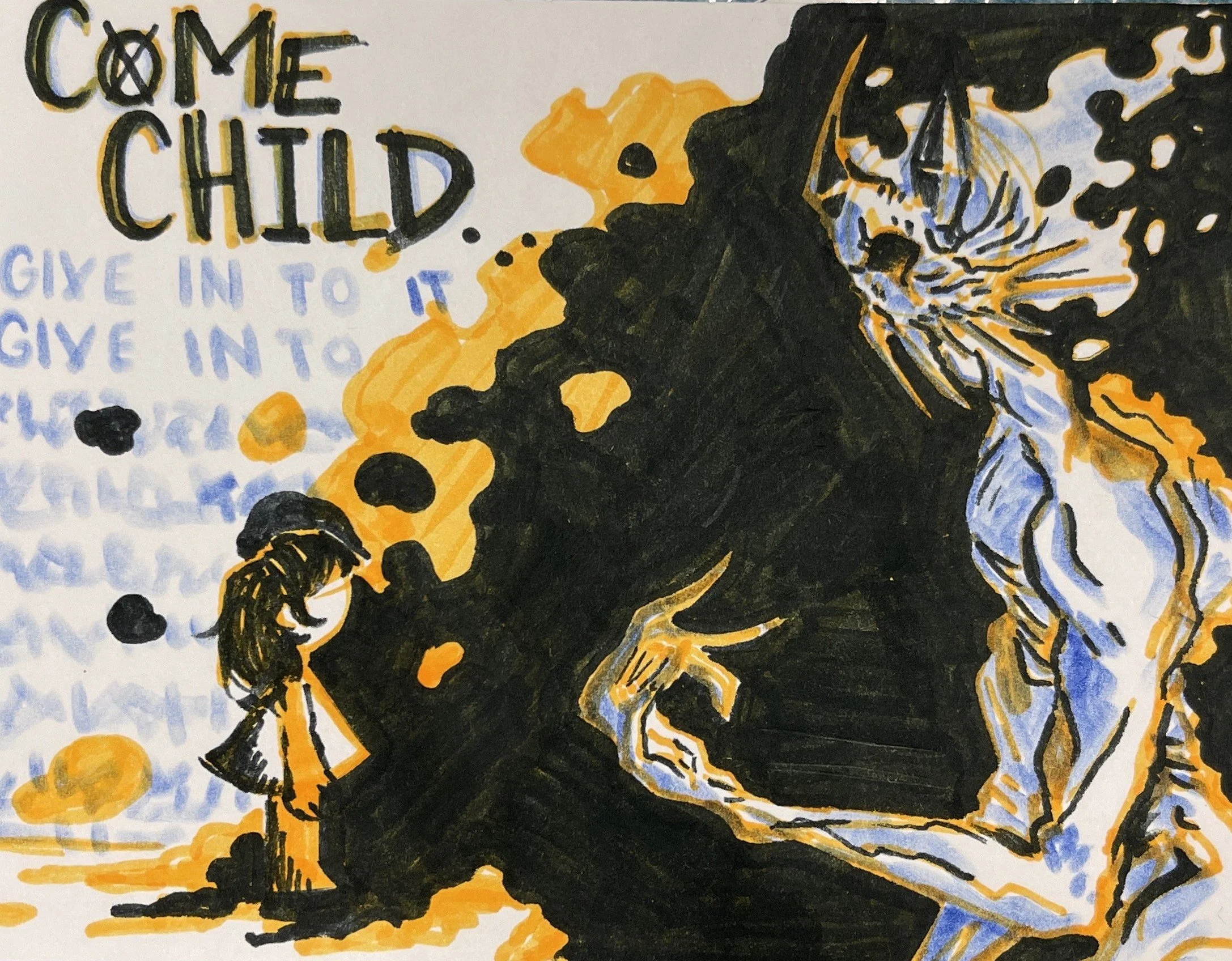 A lot of the original concept drawings I made for Behind Hazel’s House were done in half-dried markers while working at a daycare.